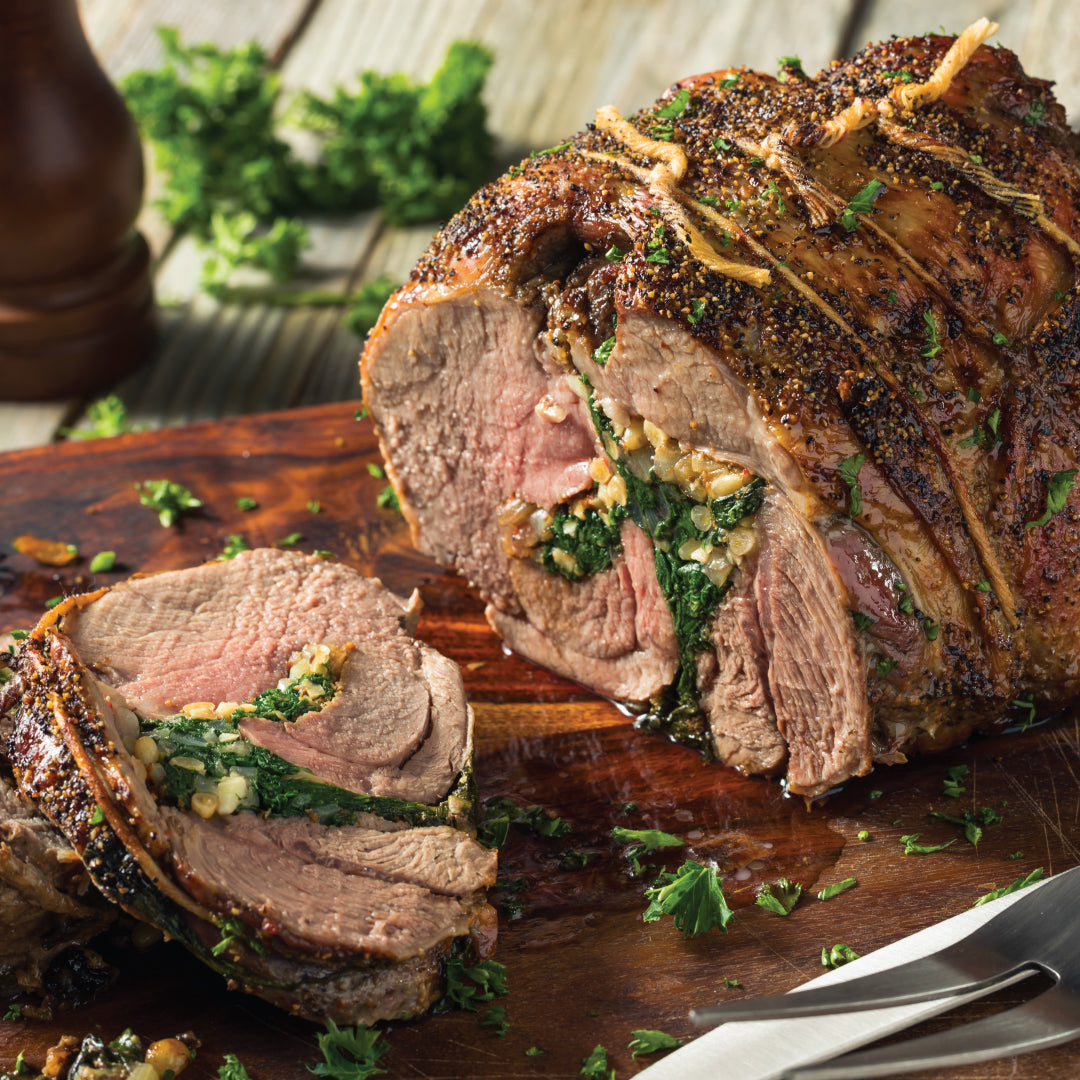 Cooking Suggestions: To prepare a stuffed leg of lamb, start by deboning the lamb leg and creating a pocket for the stuffing. Fill it with a savory mixture of herbs, breadcrumbs, and your choice of ingredients like garlic, onions, and spinach. Roast the lamb at 325°F (163°C) for about 25-30 minutes per pound until it reaches an internal temperature of 145°F (63°C) for medium-rare. Let it rest before slicing and serving alongside roasted vegetables or creamy mashed potatoes. Or, for more detailed instructions on a bone-in leg of lamb, check out our Slow-Cooked Leg of Lamb Recipe.